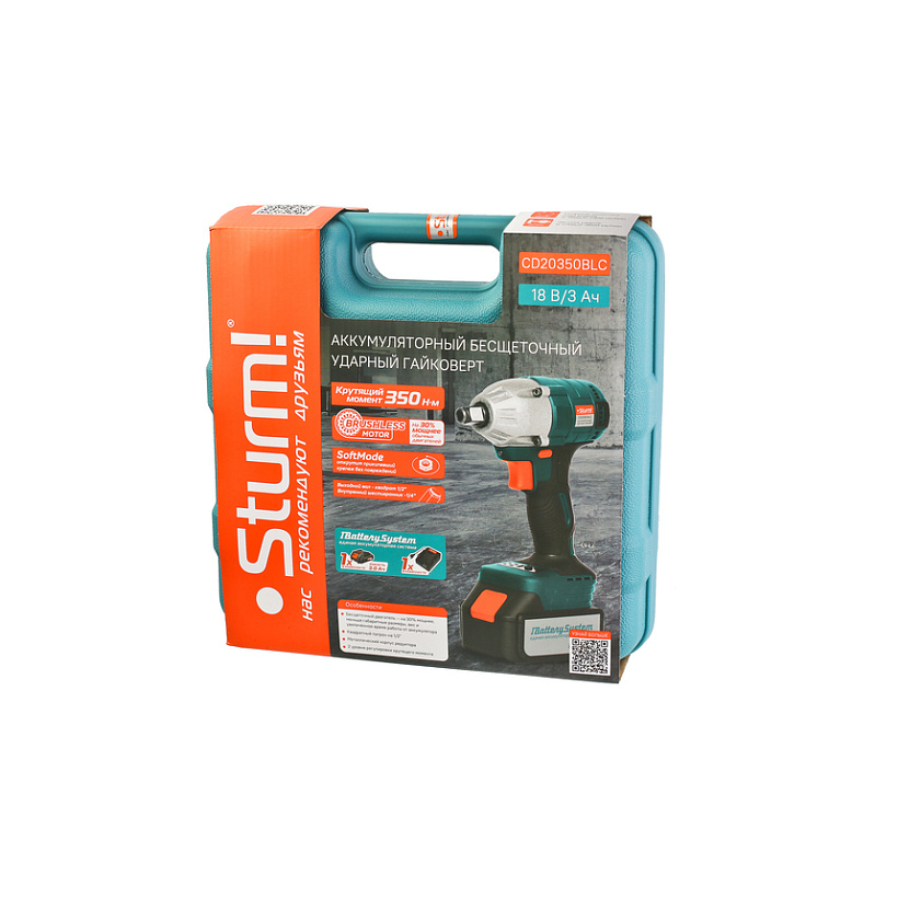 CD20350BLC Гайковерт ударн б/щ Sturm!, 18В, 1BatterySystem, 350Нм, 1/2", 2скор, 1x3.0Ач, кейс