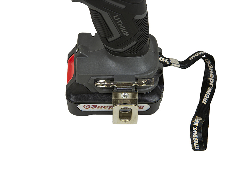 Удобное крепление для подвеса, карабин-защелка и набор бит в комплекте.