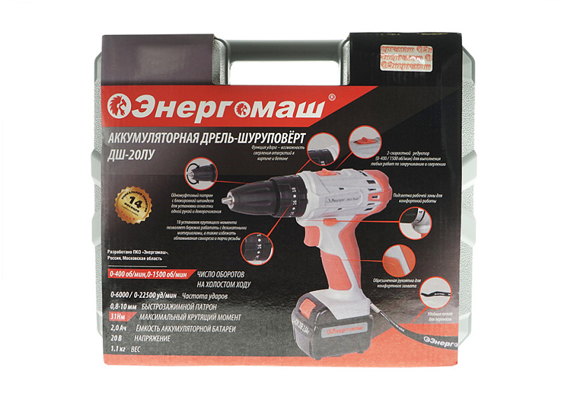 Аккумуляторный шуруповерт Энергомаш ДШ-20ЛУ