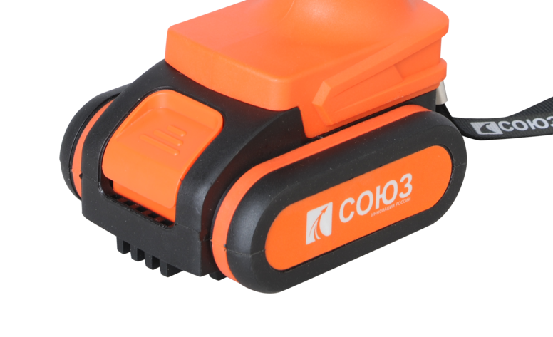 СОЮЗ ДШС-12-1-ПРОМО — аккумуляторный 12 В двухскоростной шуруповерт бытового назначения. Модель характеризуется небольшими габаритами и легким весом. Благодаря корпусу из ударопрочного нейлона, инструмент обладает повышенной стойкостью к возможным механическими повреждениям, а обилие на корпусе мягких прорезиненных накладок позволяет работать без напряжения пальцев и снижает усталость. Шуруповерт оснащен 12 В электромотором и надежным планетарным механизмом – развивает максимальный крутящий момент до 30 Нм, что способствует эффективной работе с любым материалом: от древесины до металлопроката. Редуктор имеет две скорости: режим пониженных оборотов (0-420 об/мин) предназначен для работ с крепежом, режим повышенных оборотов (0-1500 об/мин) — для сверления отверстий. Наличие муфты регулировки усилия c 18 ступенями обеспечивает возможность изменять в широком диапазоне значения момента затяжки на валу шпинделя. Универсальности применения, также, способствует установленный на модели быстрозажимной 10 мм патрон. Важной особенностью СОЮЗ ДШС-12-1-ПРОМО является LED-подсветка рабочей зоны с направленным, симметричным лучом, существенно облегчающая работу при недостаточном освещении. Модель комплектуется литий-ионным (Li-ion) аккумулятором емкостью 2.0 Ач, зарядным устройством и битой.