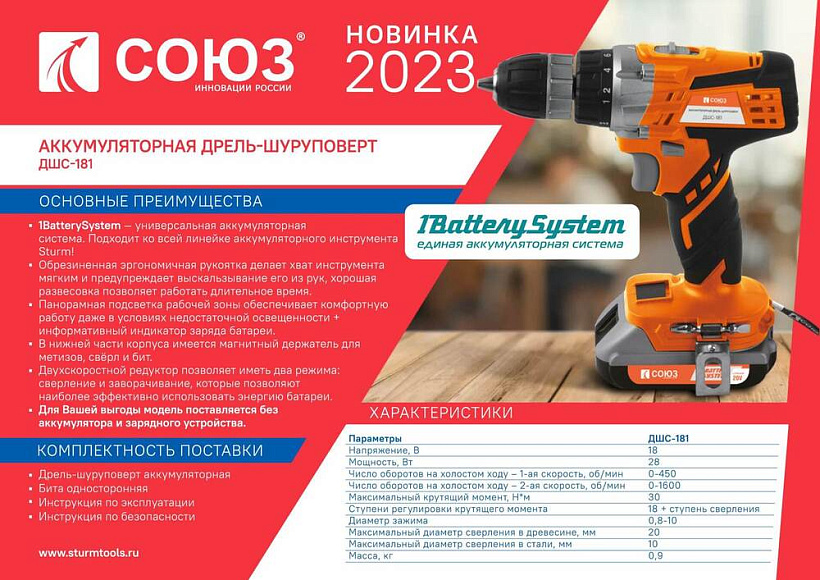 Аккумуляторный шуруповерт СОЮЗ ДШС-181
