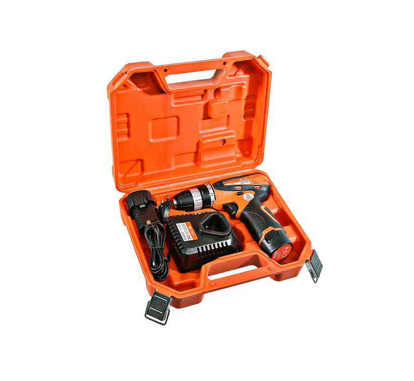* Аккумуляторная дрель-шуруповерт; * 2 аккумулятора; * Зарядное устройство; * 2 биты; * Кейс.
