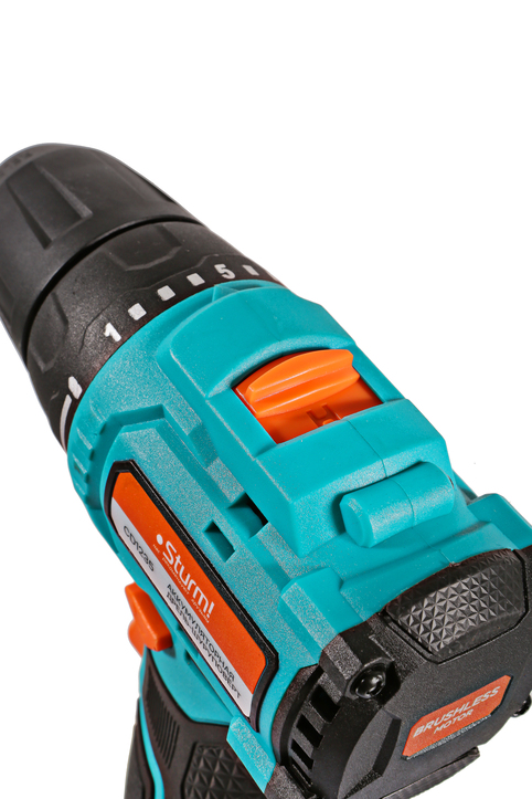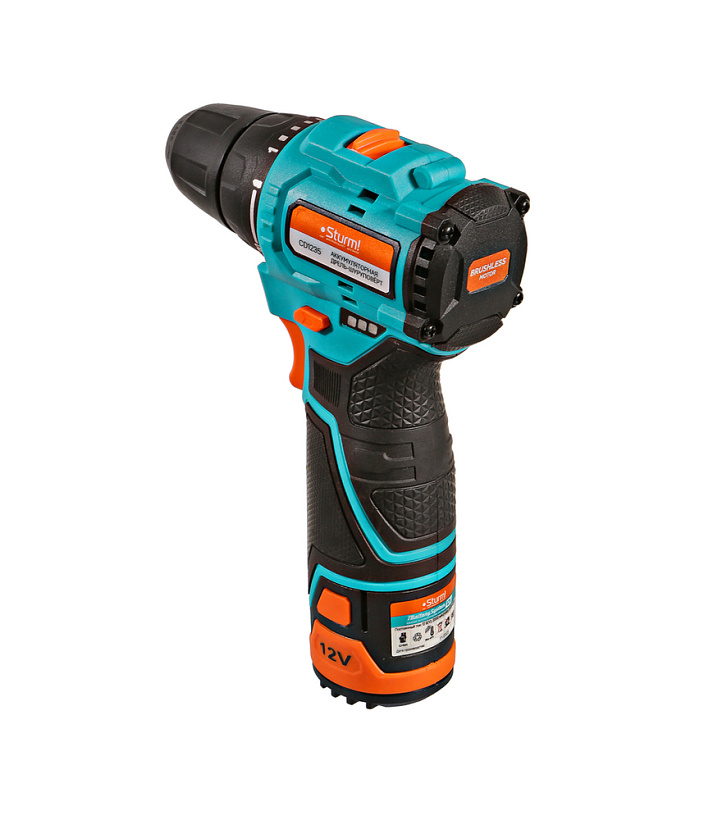 Sturm CD1235 – аккумуляторный 12В двухскоростной шуруповерт линейки 1BatterySystem12V, обеспечивающей совместимость одного и того же аккумулятора с целым рядом наименований инструмента. Является одним из самых компактных шуруповертов в своем классе. Модель обладает максимально сбалансированной компоновкой: небольшие длина корпуса и толщина рукояти позволяют эффективное использование в условиях с затрудненным доступом, а нейтральный центр тяжести, и обилие прорезиненных противоскользящих поверхностей способствуют надежному хвату, и лучшему контролю в процессе работы. Шуруповерт оснащен 12 В бесщеточным двигателем, характеризующимся на 30% лучшей производительностью в сравнении с коллекторными аналогами. Кроме того, бесщеточный двигатель отлично справляется с кратковременными перегрузками и не склонен к перегреву. Инструмент имеет две скорости: режим пониженных оборотов (0 – 400 об/мин) предназначен для работ с крепежом, режим повышенных оборотов (0 – 1400 об/мин) – для сверления отверстий в различных материалах. Наличие 20-ступенчатой муфты регулировки усилия позволяет производить максимально гибкую настройку необходимого момента затяжки. Одномуфтовый, быстрозажимной патрон и наличие функции блокировки вала способствуют удобству смены оснастки одной рукой. Кроме того, модель Sturm CD1235 получила LED подсветку рабочей зоны, индикатор остаточного заряда аккумулятора PowerCheck, а также встроенный Type C разъем, позволяющий заряжать шуруповерт от зарядного устройства телефона. Шуруповерт штатно комплектуется литий-ионным (Li-ion) аккумулятором емкостью 2.0 А ч, и зарядным кабелем Type А – Type C.