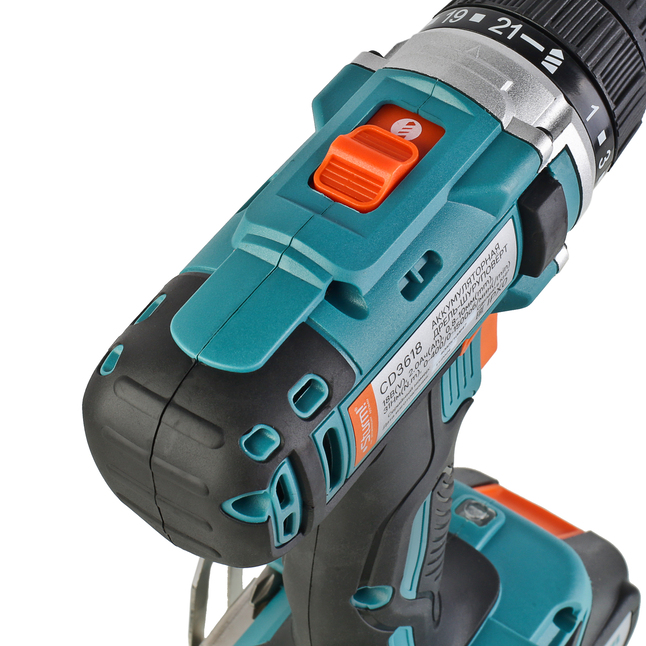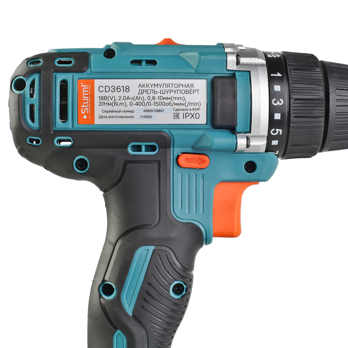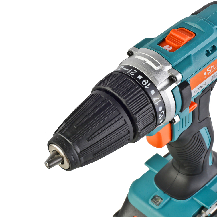Sturm CD3618 – аккумуляторный 18 вольтовый двухскоростной шуруповерт бытового назначения. Модель является частью линейки 1Battery System, обеспечивающей совместимость одного и того же аккумулятора с целым рядом инструмента. Шуруповерт Sturm CD3618 представляет оптимальное сочетание мощности, компактности и широкого функционала. Оснащен производительным 18В электромотором и надежным планетарным механизмом, позволяющим эффективно использовать инструмент как для работ с крепежом любого размера, так и для сверления в материалах с разной плотностью. Редуктор имеет две скорости: режим пониженных оборотов (0 – 400 об / мин) предназначен для работ с крепежом, режим повышенных оборотов (0 – 1500 об / мин) – для сверления отверстий. Благодаря муфте регулировки усилия c 21 ступенью, значение момента затяжки на валу шпинделя можно изменять в широком диапазоне – это дает возможность максимально гибко настраивать инструмент применимо к типам используемых крепежных элементов и их размеру, а также учитывая материал заготовки. Небольшая толщина корпуса и рукояти, а также применение конусного патрона позволяют эффективно использовать модель в условиях с трудным доступом. Нейтральный центр тяжести и обилие прорезиненных противоскользящих поверхностей способствуют надежному хвату и лучшему контролю шуруповерта в процессе работы, а дополнительные резиновые накладки на боковинах корпуса самортизируют удар при случайном падении и удержат инструмент на наклонной поверхности, предотвращая его соскальзывание. К особенностям модели Sturm CD3618 стоит отнести функцию блокировки вала шпинделя, электронный тормоз выбега двигателя, гарантирующий мгновенную остановку патрона, а также LED подсветку рабочей зоны, существенно облегчающей работу при недостаточном освещении. Предусмотрена специальная зацепная скоба, для крепления на пояс, а также страховочный ремешок для руки. Шуруповерт комплектуется парой литий-ионных (Li-ion) аккумуляторов, емкостью 2 А ч, импульсным зарядным устройством, а также пластиковым кейсом для удобства хранения и транспортировки.