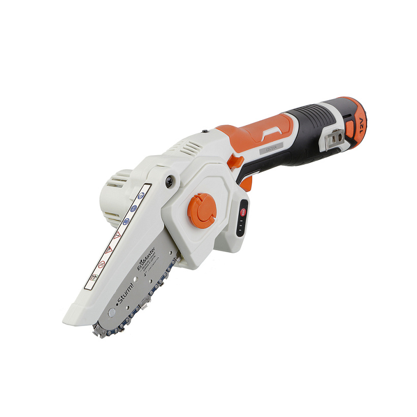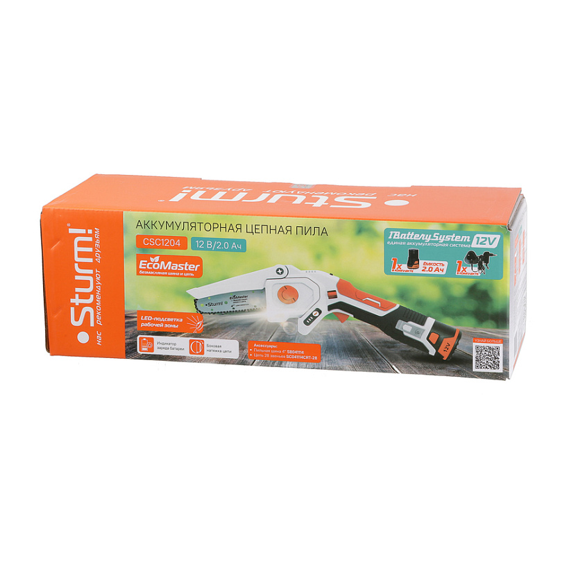 Аккумуляторная пила CSC1204 Sturm! Предназначена для бытового использования. Данная модель обладает повышенной мобильностью, так как может использоваться вне зависимости от источников питания. Идеально подходит для работы в саду при уходе за растущими деревьями, распила и обрезания веток деревьев, а также справится с простыми столярными работами.