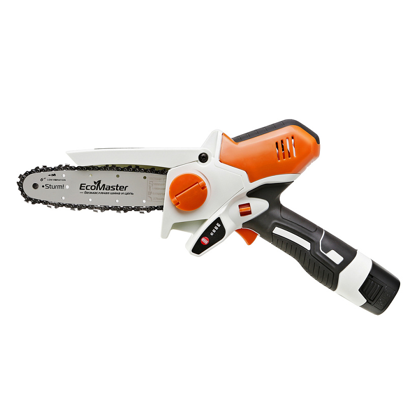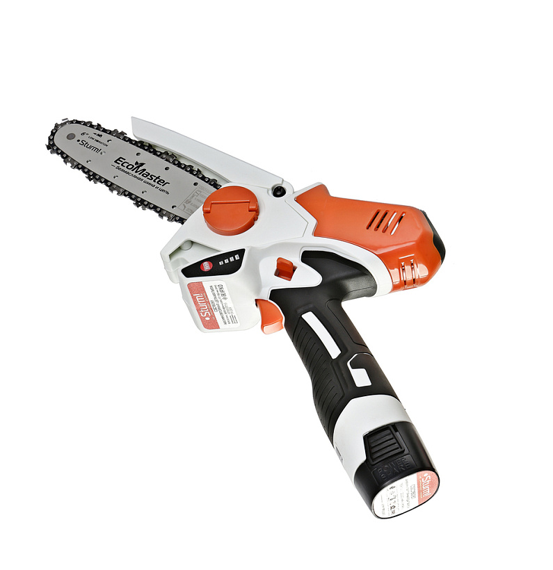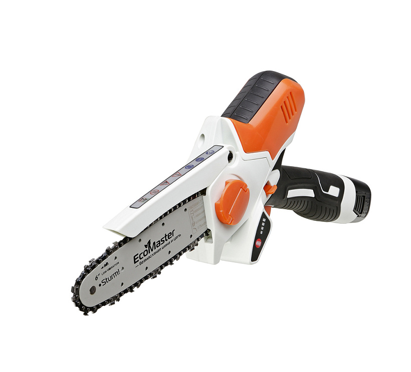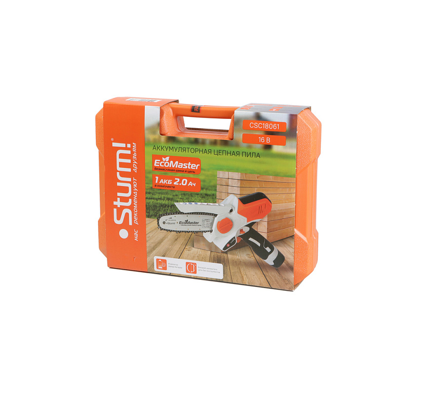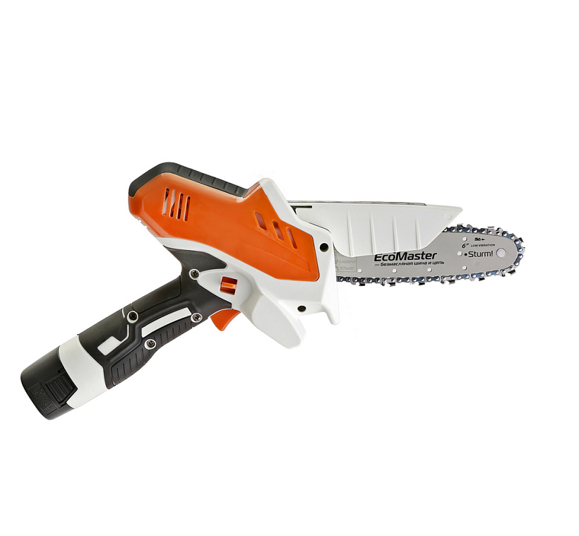 Аккумуляторная цепная пила Sturm! CSC18061 прекрасно справится с обрезкой веток деревьев и простыми столярными работами.