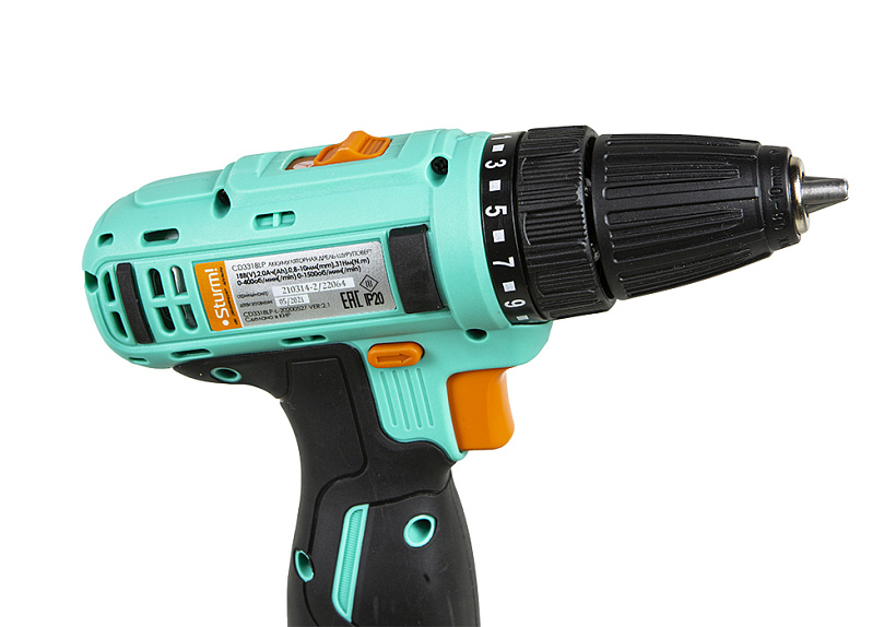 Sturm CD3318LP – аккумуляторный 18В двухскоростной шуруповерт бытового назначения. Представляет оптимальное сочетание мощности, компактности и широкого функционала. Минимальная толщина корпуса и рукояти, а также применение конусного патрона позволяют эффективно использовать шуруповерт в условиях с трудным доступом. Нейтральный центр тяжести и обилие прорезиненных противоскользящих поверхностей способствуют надежному хвату и лучшему контролю инструмента в процессе работы, а дополнительные резиновые накладки на боковинах корпуса амортизируют удар при случайном падении и удерживают инструмент на наклонной поверхности, предотвращая его соскальзывание. Модель оснащена производительным 18В электромотором и мощным планетарным механизмом, позволяющими эффективное использование инструмента при различных операциях: от работ с крепежом разного размера до сверления в различных материалах. Редуктор имеет две скорости – режим пониженных оборотов (0 – 400 об / мин) предназначен для работ с крепежом, режим повышенных оборотов (0 – 1500 об / мин) – для сверления отверстий. Благодаря муфте регулировки усилия c 21 фиксированным положением, значение момента затяжки на валу шпинделя можно изменять в широком диапазоне – это дает возможность максимально гибко настраивать инструмент применимо к видам используемых крепежных элементов и их размеру, а также учитывая материал заготовки. Важными особенностями Sturm CD3318LP являются функция блокировки вала шпинделя, за счет чего достигается быстрота замены оснастки, а также электронный тормоз выбега двигателя, обеспечивающий моментальную остановку патрона – удобство при серийной работе. Для комфорта пользователя при работе в условиях недостаточной освещенности предусмотрена LED подсветка рабочей зоны. Модель штатно комплектуется парой литий-ионных (Li-ion) аккумуляторов, емкостью 2 А ч, импульсным зарядным устройством, позволяющим быструю зарядку полностью разряженного аккумулятора (время полной зарядки 50 – 60 минут), а также пластиковым кейсом для удобства хранения и транспортировки.