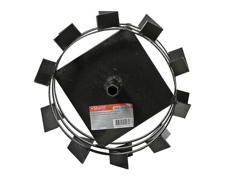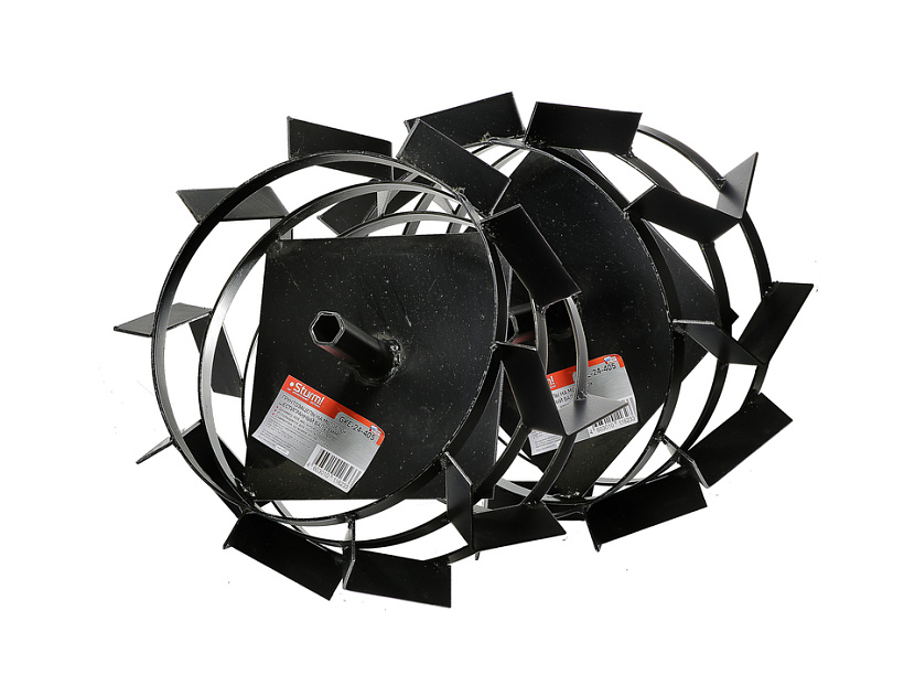 Грунтозацепы 405 мм S23 шестигранный вал Sturm! GKE-24-405 используются в качестве замены резиновых колес и обеспечивают сцепление с грунтом при работе мотоблока. Колеса выполнены в виде нескольких полос металла со вваренными в середину листами металла.