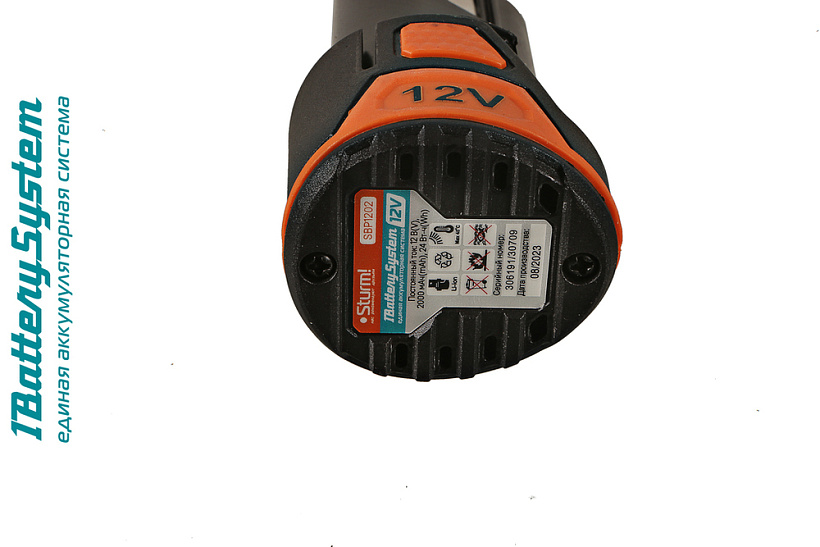 Sturm SBP1202 – универсальная 12В аккумуляторная батарея емкостью 2.0 А ч. Является частью единой аккумуляторной системы 1BatterySystem12V и совместима со всей линейкой аккумуляторного инструмента данной системы. Благодаря современной литий-ионной (Li-ion) технологии, аккумулятор сохраняет заряд на протяжении длительного времени, а отсутствие эффекта памяти позволяет заряжать его в любой момент, не беспокоясь о потере емкости. Компактные габариты аккумулятора положительно влияют на балансировку инструмента и удобство работы в труднодоступных местах.
