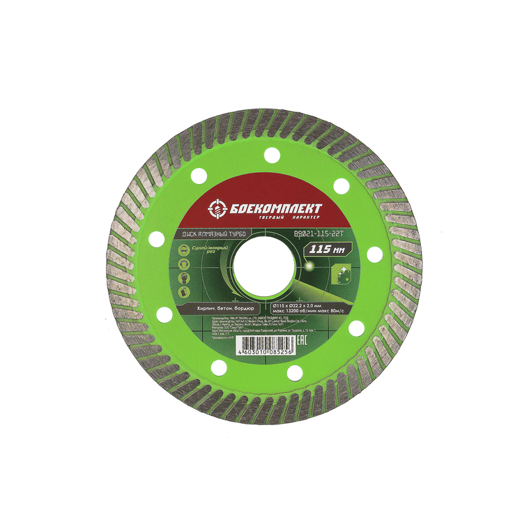 Алмазный диск 115x22,23 ТУРБО, сухой рез, БОЕКОМПЛЕКТ