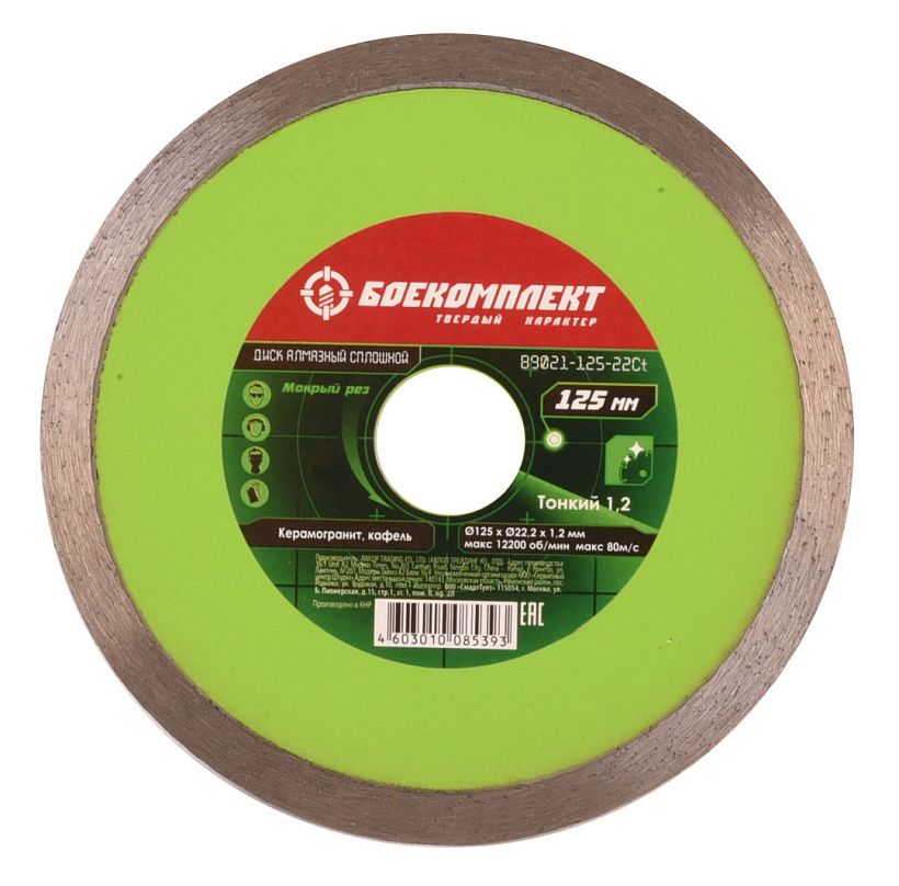 Алмазный диск 125x22,23 ТОНКИЙ, сплошной, мокрый рез, БОЕКОМПЛЕКТ