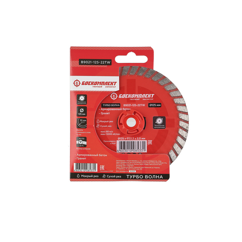 Алмазный диск 125x22,23 ТУРБО ВОЛНА, сухой рез, БОЕКОМПЛЕКТ