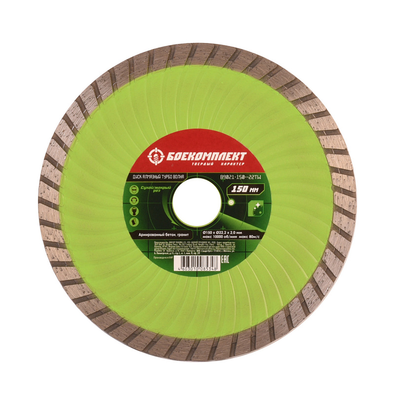 Алмазный диск 150x22,23 ТУРБО ВОЛНА, сухой рез, БОЕКОМПЛЕКТ