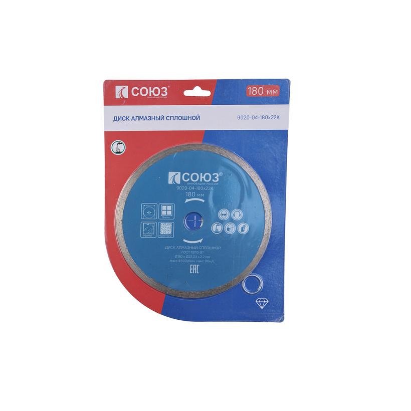 Алмазный диск со сплошным алмазным слоем, 180х22,2, Союз
