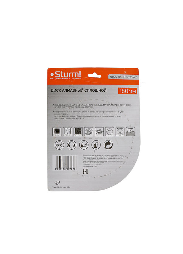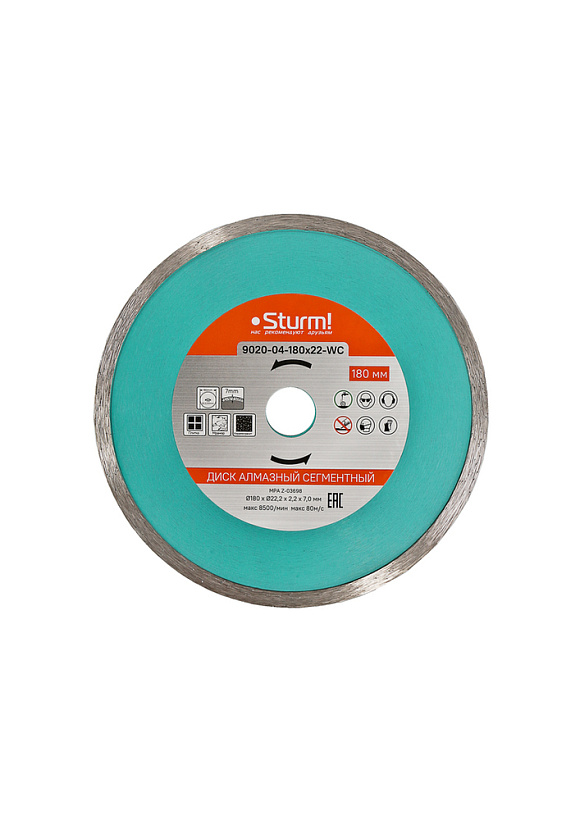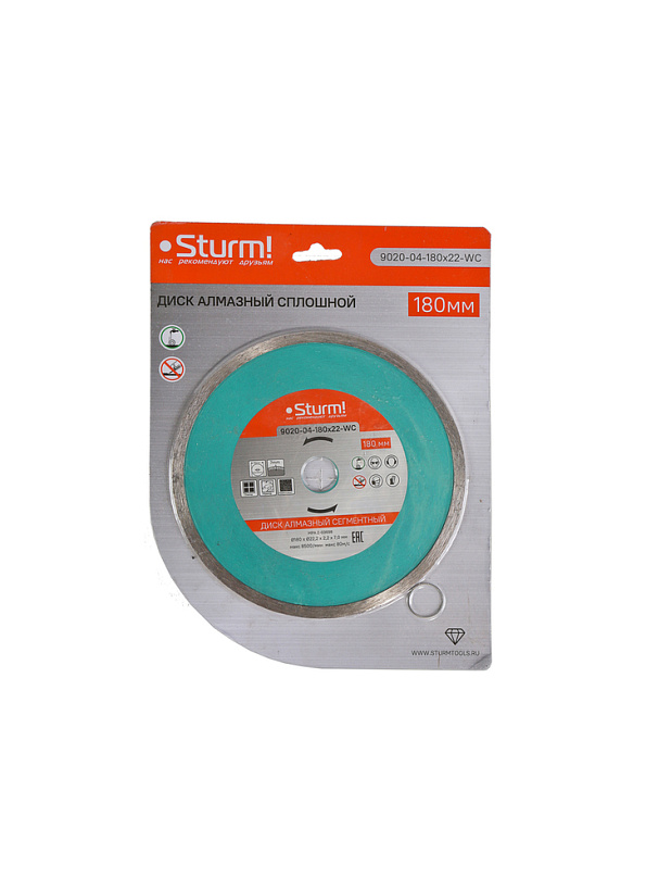 Алмазный диск, влажная резка, непрерывный 180мм Sturm!