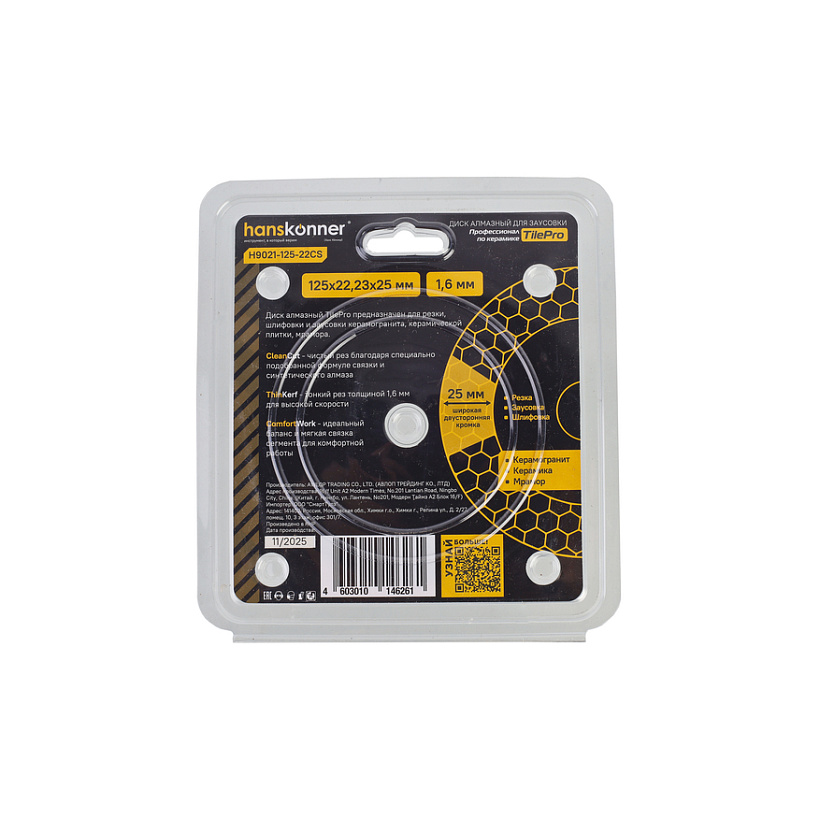 Диск алмазный Hanskonner H9021-125-22CS