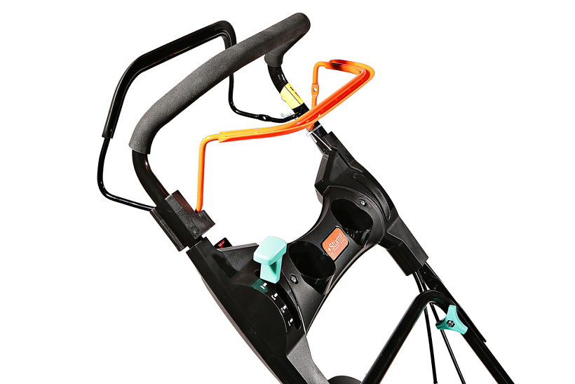 Для более компактного хранения или при транспортировке рукоятка газонокосилки легко складывается. Тем самым экономит пространство.
