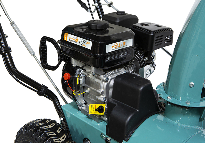 Бензиновый снегоуборщик Sturm! STG7656R - это самоходная двухступенчатая снегоуборочная машина, оснащена зимним вариантом надежного четырехтактного бензинового двигателя модели 170F. Система управления двигателем обеспечивает его работу в оптимальном диапазоне максимального крутящего момента, что даёт хорошую энерговооружённость для выполнения тяжёлых работ.