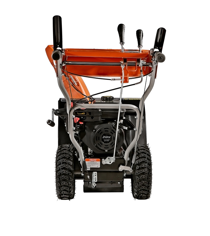 Sturm STG7661 — универсальный самоходный бензиновый снегоуборщик. Предназначен для расчистки территорий средней и большой площади от снега различной плотности, как свежевыпавшего, так и слежавшегося. Модель оснащена надежным четырехтактным двигателем KC, специально адаптированным для зимней эксплуатации, а также многоступенчатой трансмиссией, с шестью скоростями движения вперед и двумя назад. Низшие передачи применяются при уборке плотно слежавшегося и мокрого снега, средние передачи — для работы со свежевыпавшим снегом, высшая передача — транспортный режим, предназначенный преимущественно для перемещения снегоуборщика. Высокая производительность машины обеспечивается не только мощным двигателем, но и продуманной конструкцией забора снега — этому способствует использование мощных агрессивных шнеков большого диаметра (31 см), позволяющих легко справляться даже с плотным слежавшимся снегом и настом, а также применение вместительного снегозагребного ковша, гарантирующего внушительную, одну из лучших в классе, ширину прохода в 61 см и возможность убирать сугробы до полуметра высотой. Снегоуборщик оснащен надежным металлическим выпускным желобом, с регулировкой по направлению выброса. Поворот желоба осуществляется дистанционно, посредством специального рычага на панели. Кроме того, предусмотрена возможность настройки угла выброса, благодаря которой регулируется необходимое расстояние выброса снежной массы. Маневренность и проходимость машины обеспечивают штатные широкие пневматические шины с глубоким протектором.