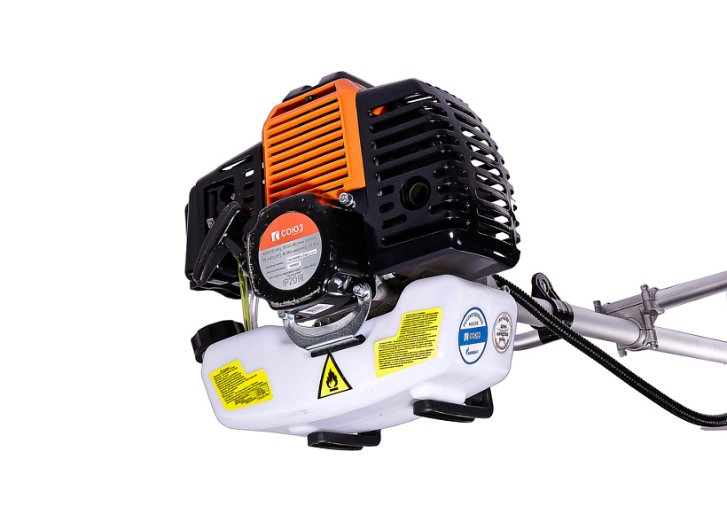 СОЮЗ БТС-9256Л – универсальная производительная бензиновая коса бытового класса для обработки приусадебных территорий больших площадей (более 1000 кв. метров) Инструмент рассчитан на работу в условиях повышенных длительных нагрузок и оснащен, одним из наиболее мощных в классе, бензиновым двухтактным двигателем рабочим объемом 56 куб см (мощность 4 кВт), вкупе с усиленным стальным валом и высокопрочным редуктором позволяющим уверенное использование бензокосы с разными типами режущей оснастки, включая металлические ножи и фрезы, а также культиваторные насадки. Благодаря длинной неразборной штанге и Т-образной широкой рукояти велосипедного типа бензокоса удобна при продолжительной работе.