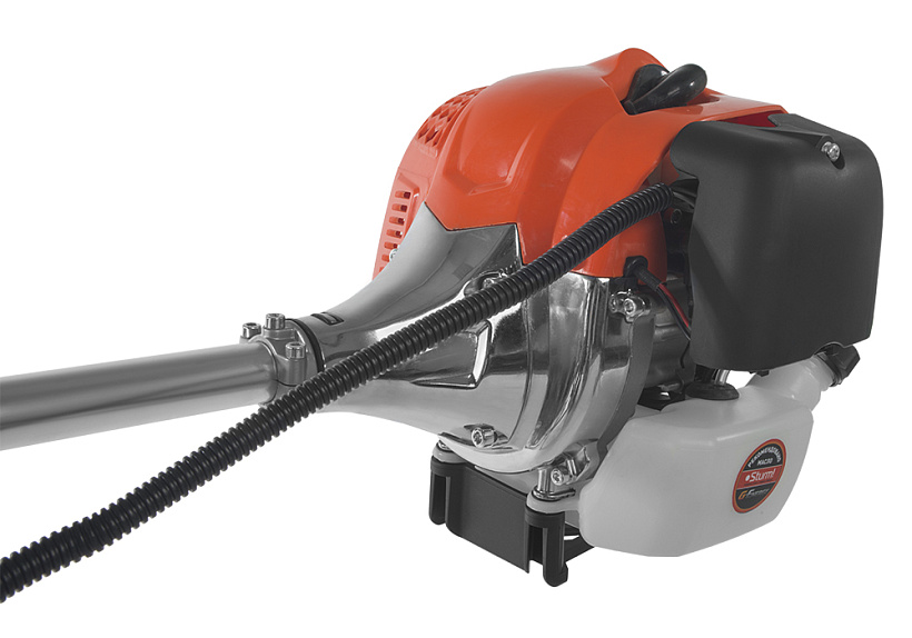 Универсальный инструмент выгодно подходит как для кошения травы, так и для подрезки деревьев и кустарников, отличающееся хорошей производительностью на участках с любым рельефом.
