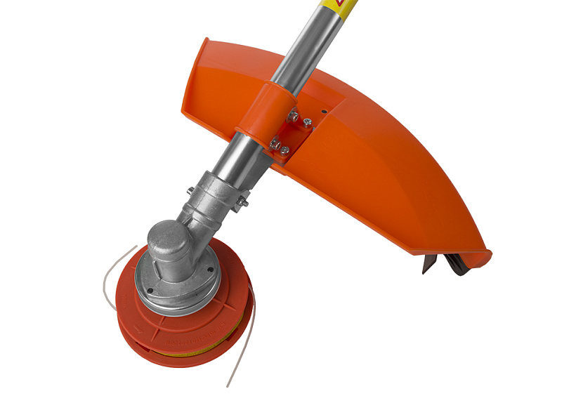 Универсальный защитный кожух можно использовать с ножом- косой для жестких зарослей, фрезой из упрочненной углеродистой стали с твердосплавными напайками для кустарника и тонких деревьев или кордовой головкой для травы. При этом замена лезвия производится просто и безопасно.