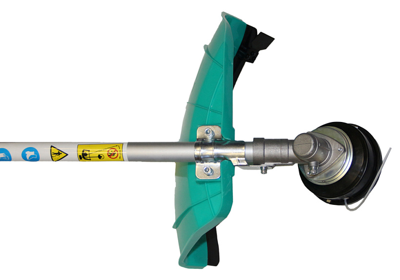 Универсальный защитный кожух можно использовать с ножом- косой для жестких зарослей, фрезой из упрочненной углеродистой стали для кустарника и тонких деревьев или кордовой головкой для травы. При этом замена лезвия производится просто и безопасно.