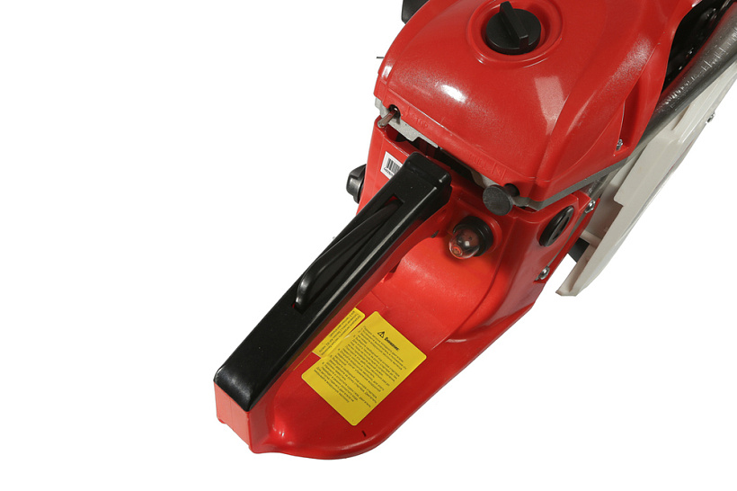 Безопасность работы с инструментом обеспечивается ограничителем цепи, защитным щитком для правой руки и цепным тормозом, активируемым принудительно либо силой инерции. Два различных по ситуации способа активации тормоза цепи разработаны для уверенной безопасности при работе с бензопилой.