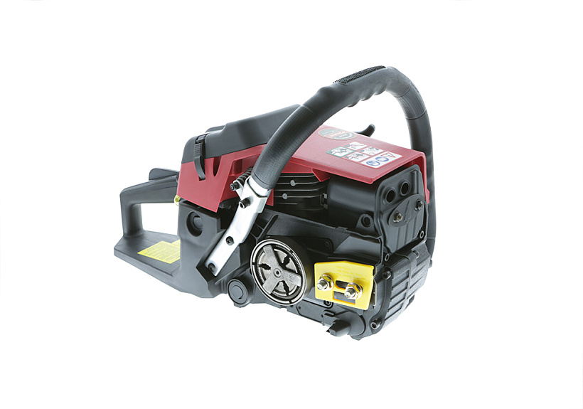 В основе работы двигателя ДВС лежит преобразование энергии сгорания топлива в механическую энергию. Легкий старт обеспечивает бесперебойный запуск без особых усилий. Также предусмотрен праймер подкачки топлива. Благодаря ему можно завести не прогретый двигатель при любых условиях. Чтобы инструмент всегда был готов к работе, в его конструкции предусмотрен возвратный механизм стартера – он в автоматическом режиме приводит бензопилу в пусковое положение для быстрого запуска. При переводе инструмента в холостой режим масляный насос (регулируемый) приостанавливает смазку и позволяет настроить подачу масла. Усиленный картер двигателя и кованый коленчатый вал обладают высокой прочностью и долговечностью. Объем масляного бака составляет 0,26 л.