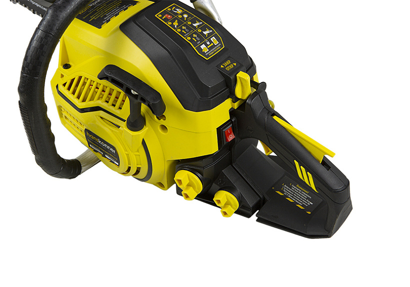 Бензопила Hanskonner HGC1214. Маневренная износостойкая модель с быстрым разгоном отличается удобством в эксплуатации подходит для выполнения работ в стесненных условиях.