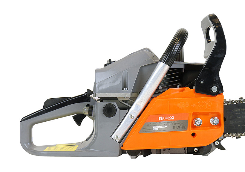 СОЮЗ ПТС-99371 — универсальная бензиновая пила для домашнего применения. Предназначена для работ по распилу древесины различной сложности и объема: от подрезания веток на садовом участке и вплоть до сезонной заготовки дров. Инструмент оснащен экономичным двухтактным двигателем рабочим объемом 38 см3, мощностью 2,0 кВт и 405 мм пильной гарнитурой, достаточной для выполнения большинства бытовых задач. Благодаря нейтральному центру тяжести, модель отлично сбалансирована, хорошо лежит в руках и имеет отличную маневренность, позволяя с легкостью выполнять распилы под разными углами. Относительно небольшая масса и многоточечная антивибрационная система, значительно снижающая передаваемую на руки вибрацию, способствуют меньшей усталости при длительных работах. Инструмент максимально прост в использовании и не вызовет затруднений у пользователей, не обладающими уверенными навыками работы с бензиновыми пилами. Этому способствует ряд современных опций: легкость запуска гарантирует система облегченного старта со специальной дополнительной пружиной, а наличие праймера позволяет уверенный пуск инструмента в условиях низких температур и после длительных перерывов в эксплуатации. За безопасность использования отвечает механический тормоз цепи, защищая пользователя в случае обратного удара. Возможность безынструментального доступа к карбюратору, фильтрующему элементу и свече зажигания обеспечивает удобство обслуживания пилы даже в самых неприспособленных условиях.
