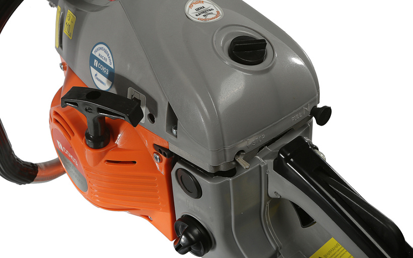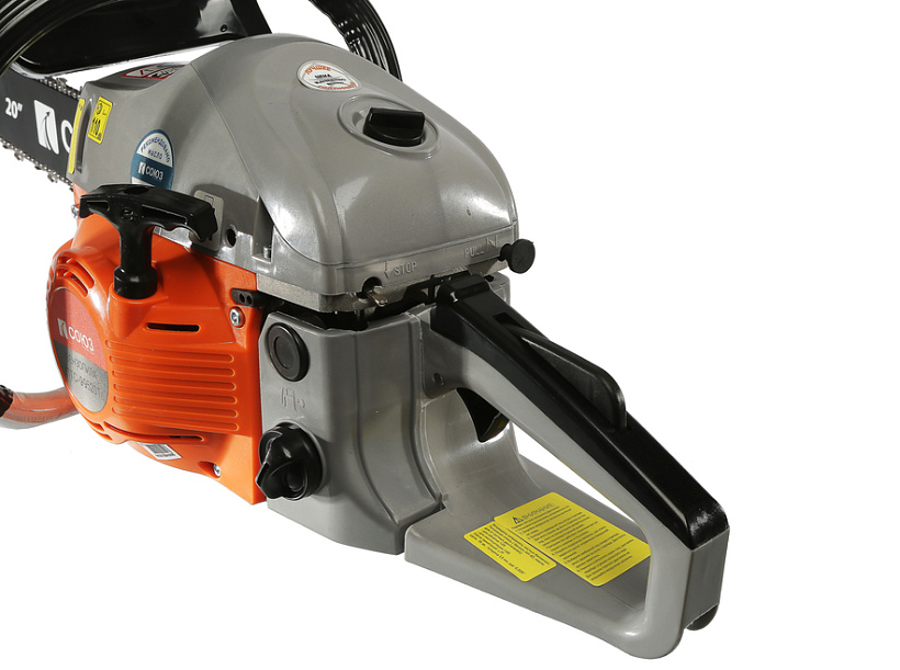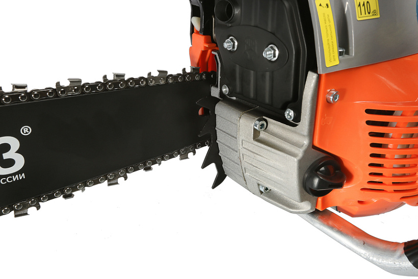 *Пильная гарнитура увеличенной размерности – позволяет использовать инструмент при валке высоких деревьев и распиловки стволов большого диаметр *Надежный карбюратор – гарантирует качественное смесеобразование и стабильную работу двигателя при различных нагрузках и температурных условиях *Праймер (насос предварительной подкачки топлива) – уверенный запуск инструмента в условиях низких температур и после длительных перерывов в эксплуатации *Многоточечная пружинная антивибрационная система – поглощает практически все колебания цепи и двигателя, снижая нагрузку на суставы и позвоночник оператора, делает работу более комфортной *Аварийный механический тормоз цепи – обеспечивает защиту оператора в случае обратного удара, мгновенно останавливая цепь
