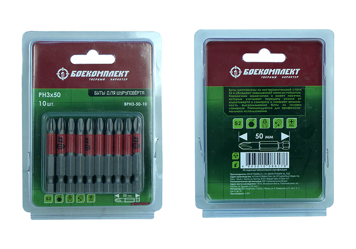 Биты PH3x50мм, сталь S2, 10шт, БОЕКОМПЛЕКТ