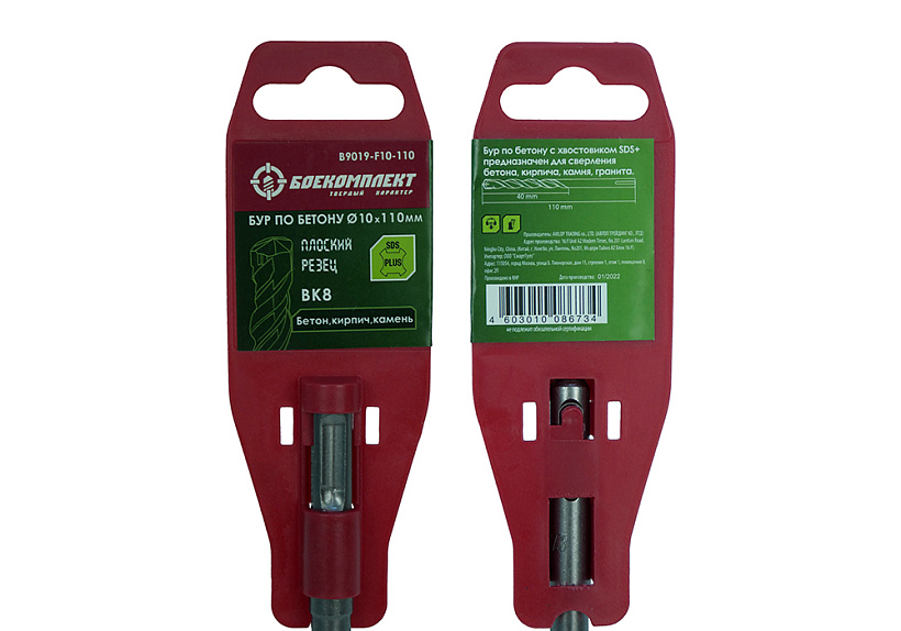 Бур SDS+ 10х110 плоский резец ВК8 спираль S4 БОЕКОМПЛЕКТ