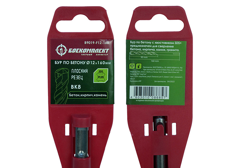 Бур SDS+ 12х160 плоский резец ВК8 спираль S4 БОЕКОМПЛЕКТ