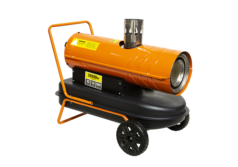 Дизельная тепловая пушка непрямого нагрева DKH20CH предназначена для работы как при строительстве или ремонте в производственных помещениях и на открытых площадках, так и в жилых помещениях. Модель оснащена теплообменником из высококачественной нержавеющей стали марки, разделяющим зоны горения топлива и нагрева воздуха. Благодаря данному трехходовому теплообменнику, КПД работы теплогенератора достигает уровня до 85%. Тепловая мощность - 20 кВт тепла, а производительность 560 м3/ч. Уникальная конструкция позволяет отводить продукты сгорания за пределы обогреваемого помещения. Для максимальной безопасности пушка оснащена системой защиты от перегрева, контролем стабилизации пламени.