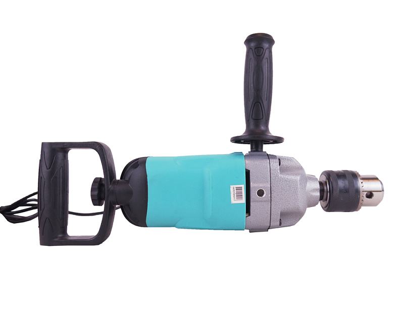 Электронная регулировка частоты вращения позволяет начать размешивание без разбрызгивания и производить точное сверление отверстий. При длительном использовании дрели-миксера удобно применять фиксатор выключателя. Ключевой патрон с максимальным диаметром 16 мм, пригоден под большинство сверл и хвостовиков насадок.