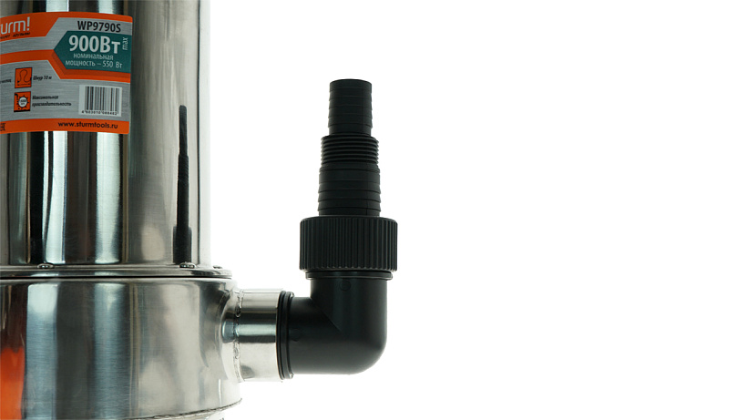 Универсальный фитинг в комплекте позволит использовать с насосом шланги и трубы различных диаметров.