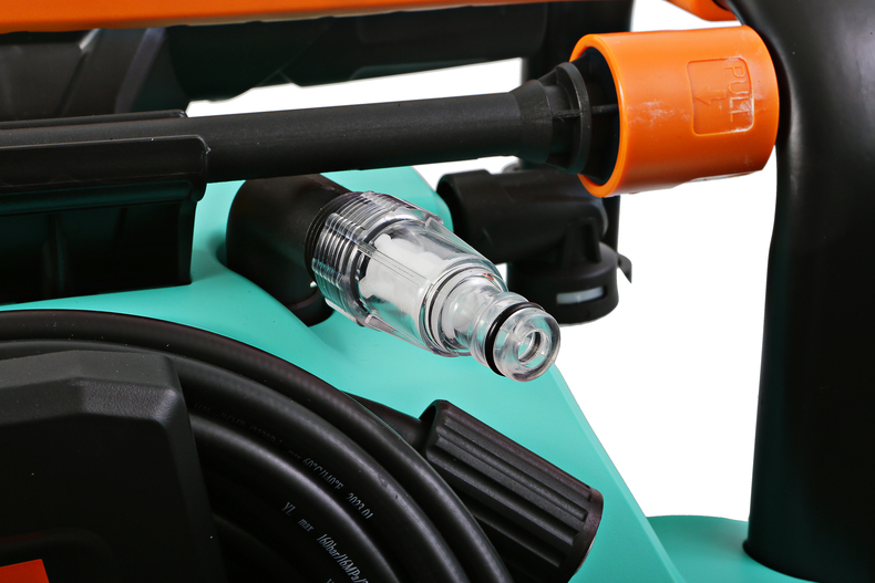 Трёх-плунжерная самовсасывающая помпа из легкого алюминиевого сплава обеспечивает давление необходимое для удаления стойких загрязнений ипозволяет использовать различные источники водоснабжения, в том числе и без источника давления.