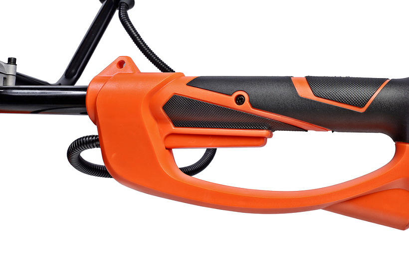 СОЮЗ ГКС-3525 — универсальная электрокоса для ухода за приусадебной территорией. Модель оснащена производительным 2,5 кВт мотором, развивающим максимальную частоту вращения режущей оснастки 6000 об/мин, что способствует эффективности и качеству работы. Высокие показатели по мощности, а также наличие в конструкции металлического приводного вала и прочного редуктора позволяют уверенно применять СОЮЗ ГКС-3525 в тандеме с различными типами оснастки, включая не только косильные катушки, но и металлические трехлопастные ножи для скашивания жесткой перезрелой травы и бурьяна. Компоновка с верхним расположением двигателя дает возможность использовать электрокосу для скашивания мокрой травы, так как исключается непосредственный контакт влаги с электрочастью. Кроме того, в сравнении с моделями с нижним расположением мотора, забор воздуха для охлаждения производится значительно выше зоны резания, что снижает вероятность попадания в электромотор различных абразивных частиц и пыли. Важной особенностью электрокосы является разборная двухсоставная штанга, обеспечивающая повышенное удобство при транспортировке и хранении — в случае необходимости пользователь может максимально быстро и легко разобрать штангу, тем самым, сокращая ее габаритную длину. Благодаря отличной эргономике и относительно небольшой массе инструмент очень удобен в использовании. Значительный комфорт для пользователя обеспечивает применение на модели СОЮЗ ГКС-3525 Т-образной рукояти «велосипедного типа»: она позволяет лучше контролировать электрокосу в процессе работы. Рукоять имеет возможность продольной регулировки. В штатную комплектацию инструмента входят катушка с леской, металлический трехлопастной нож и наплечный ремень.