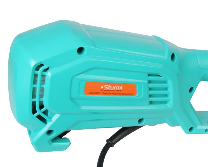 Sturm GT1800D – универсальная мощная электрическая коса для ухода за приусадебной территорией. Имеет компоновку с верхним расположением двигателя, что дает возможность применять ее для скашивания мокрой травы, так как исключается непосредственный контакт влаги с электрочастью. Кроме того, размещение мотора сверху обеспечивает инструменту отличную развесовку. Модель оснащена производительным 1.8 кВт мотором, развивающим максимальную частоту вращения режущей оснастки 7500 об / мин и позволяет уверенно использовать при работе режущую леску максимальным диаметром до 2.5 мм. Благодаря наличию стального приводного вала крутящий момент от двигателя к редуктору передается практически без потерь, что позволяет уверенно использовать не только стандартные косильные катушки, но и металлические трехлопастные ножи для скашивания жесткой, перезрелой травы и бурьяна. Инструмент максимально прост в использовании. Этому способствуют отличная эргономика и небольшой вес. Кроме того, в отличии от бензиновых аналогов, электрическая коса не требует предварительной подготовки (приготовление топливной смеси, заправка), работает без вредного выхлопа и с невысоким уровнем шума. Дополнительный комфорт при работе обеспечивает D-образная рукоять ¬– она позволяет лучше контролировать инструмент и легче обходить преграды. Предусмотрена возможность ее продольной регулировки. Для защиты пользователя от возможного случайного запуска инструмента, на корпусе установлена клавиша-фиксатор, блокирующая кнопку пуска – запуск возможен лишь после ее предварительного нажатия. Еще один элемент безопасности – специальный зацепной крюк в нижней части корпуса, предназначенный для надежной фиксации сетевого удлинителя к косе, чтобы в случае необходимости быстро отключить инструмент от электросети. В штатную комплектацию модели Sturm GT1800D входят катушка с леской, трехлопастной режущий нож, наплечный ремень и набор аксессуаров для сборки.