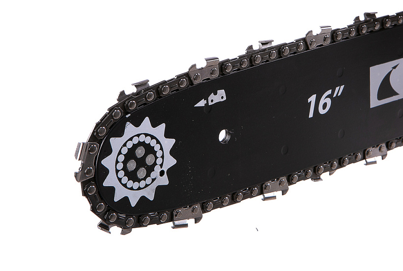 16" шина - в комплекте!! Высокая скорость движения цепи для ещё большей производительности и уменьшения нагрузки на двигатель. Смотровое окно для контроля уровня масла. Автоматическое смазывание уменьшает износ шины и цепи.