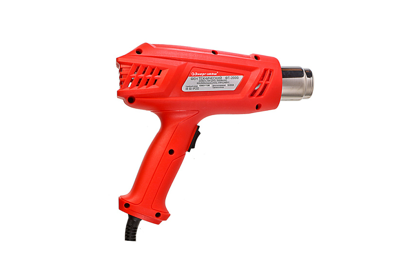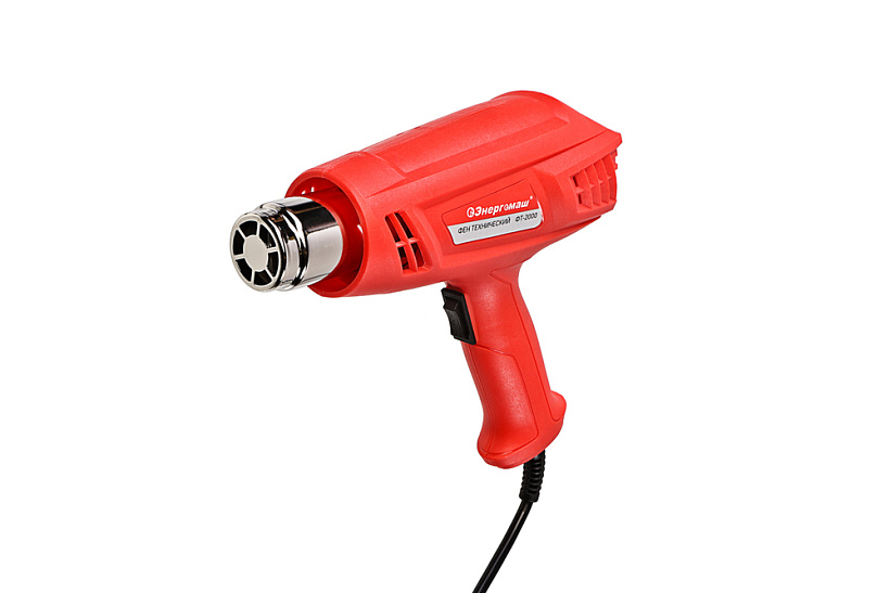 Энергомаш ФТ-2000 — надежный и простой в работе технический фен бытового назначения. Благодаря небольшой массе и компактным размерам модель обладает отличной маневренностью — уверенно контролируется и позволяет эффективное применение в условиях ограниченного пространства. Устройство может использоваться не только как мобильное, но и как стационарное — особая форма корпуса со специальной плоской основой дает возможность для большего удобства устанавливать фен в вертикальном положении. Инструмент имеет два рабочих температурных режима, которые совмещены с двумя скоростями воздушного потока: первый режим пониженной производительности обеспечивает максимальную температуру нагрева в 375°C при скорости выдува воздушного потока 300 л/мин, второй режим повышенной производительности — максимальная температура нагрева 495°C при скорости выдува воздушного потока 500 л/мин. Управление режимами происходит посредством специального переключателя. Для наиболее полного использования функционала в штатную комплектацию фена входят рефлекторное и редукционное сопла: рефлекторное сопло предназначено для разогрева пластиковых труб перед их изгибом в проектное положение в процессе монтажа, редукционное фокусирующее сопло применяется при точечной сварке, для герметизации стыков с помощью специальных наплавляемых лент, пайки медных труб и фитингов бесконтактным методом, при склеивании горячим способом любых материалов и в качестве переходника для фигурных или шлицевых насадок.