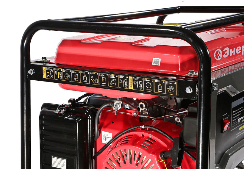 Генератор Энергомаш БГ-6600. Компактный однофазный генератор для организации мобильного энергоснабжения. Аппарат предназначен для мобильного обеспечения электроэнергией потребителей при отсутствии электроснабжения или в походных условиях. Отличный выбор для садового участка, гаража, небольшой торговой точки или организации удаленного рабочего места. Быстрый и легкий запуск двигателя и надежная работа генератора обеспечивается электронной системой зажигания и системой автоматической декомпрессии. Автоматическая система стабилизации напряжения (AVR) выполняет защиту от критичного снижения частоты и перегрузок, опасных для генератора, обеспечивая на выходе ровные параметры «чистой синусоиды», подходящей для большинства энергопотребителей. Прочный рамный каркас из закаленных труб защищает рабочие органы аппарата от механических воздействий и обеспечивают удобство перемещения и простоту установки. Система поддержания энергобезопасности автоматически отключает потребителей от генератора при возникновении короткого замыкания или перегрузки.