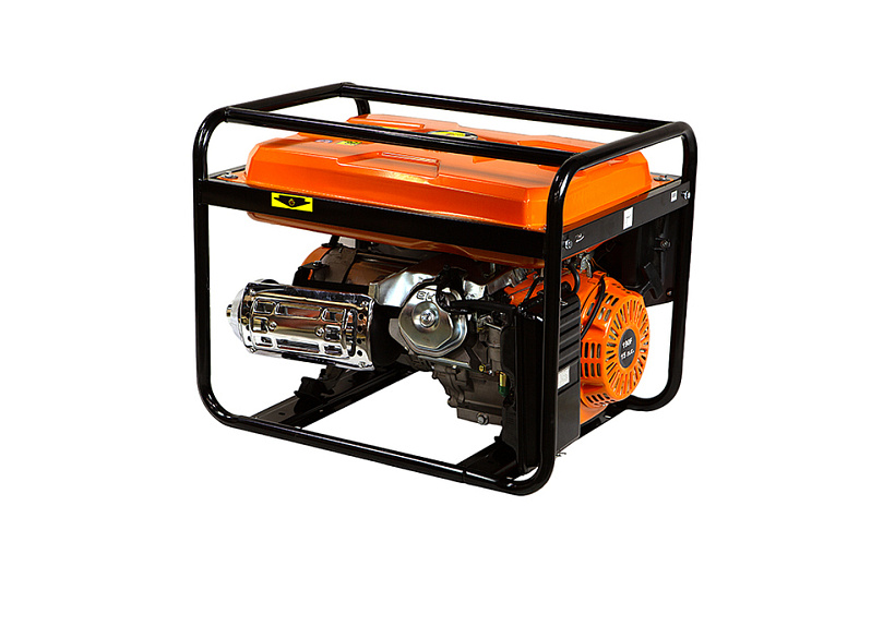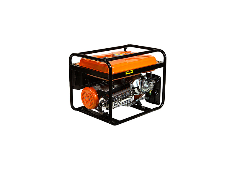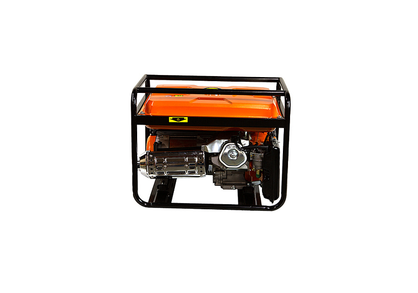 СОЮЗ ЭГС-6500 – универсальный однофазный бензиновый генератор. Максимальная мощность –5.5 кВт. Номинальная мощность – 5.0 кВт. Отлично подойдет для резервного электроснабжения загородного дома или организации удаленной рабочей площадки. Имеет классическую компоновку: двигатель и альтернатор смонтированы внутри прочной усиленной трубчатой рамы, страхующей узлы генератора и бензобак от случайных повреждений, при транспортировке. Модель оснащается четырехтактным бензиновым двигателем 190F рабочим объемом 420 см3 с верхним расположением клапанов (OHV) и воздушным охлаждением. Тип альтернатора – синхронный, с щеточно-коллекторным узлом. Синхронный альтернатор способен легко переносить индуктивные нагрузки и позволяет запитывать даже достаточно мощный строительный электроинструмент. За автоматическую стабилизацию выходного напряжения отвечает встроенная система AVR (Automatic Voltage Regulation). Панель управления оснащена контрольным аналоговым вольтметром, а также пылезащищенными розетками переменного тока 220В на 16А и на 32А с автоматическими подпружиненными крышками. Предусмотрена система поддержания энергобезопасности, принудительно отключающая агрегат при превышении допустимой нагрузки или коротком замыкании, а также система аварийной остановки двигателя при критически низком уровне масла. Запуск генератора осуществляется посредством ручного стартера.