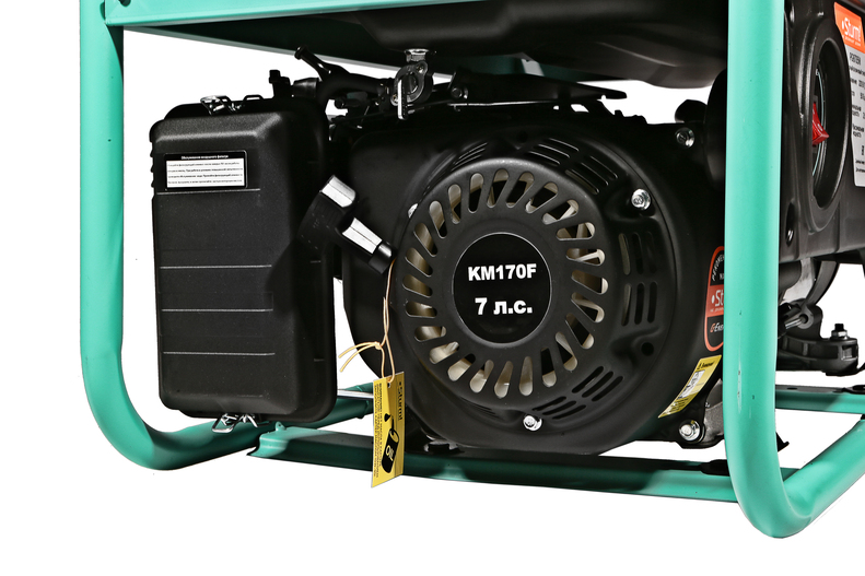 Sturm PG8735N – мощный универсальный однофазный бензиновый генератор для частного или производственного использования. Аппарат предназначен для мобильного обеспечения электроэнергией потребителей при отсутствии электроснабжения или в походных условиях. Имеет классическую компоновку: двигатель и альтернатор размещены внутри прочного рамного каркаса из закаленных труб – это позволяет защитить агрегаты бензинового генератора от возможных механических повреждений в ходе эксплуатации, а также обеспечить легкость перемещения и установки. Модель оснащается четырехтактным бензиновым двигателем KM170F рабочим объемом 212 см3 с верхним расположением клапанов (OHV) и воздушным охлаждением мощностью 5.15 кВт (7.0 л. с.) Благодаря ряду технических решений: коленчатому валу повышенной прочности, усиленной цилиндро-поршневой группе, чугунной гильзе цилиндра и ее алмазной хонинговке, силовой агрегат надежен и неприхотлив в использовании. Бензиновый генератор Sturm PG8735N получил синхронный, с щеточно-коллекторным узлом, тип альтернатора. Он способен легко переносить индуктивные нагрузки и позволяет запитывать даже достаточно мощный строительный электроинструмент. За автоматическую стабилизацию выходного напряжения отвечает встроенная система AVR (Automatic Voltage Regulation). Панель управления оснащена контрольным цифровым вольтметром, двумя пыле-влагозащищенными розетками переменного тока 220В/16А с автоматическими подпружиненными крышками и клеммным выходом постоянного тока 12В/ 5А для универсального обеспечения электропитания потребителей различного класса. Генератор имеет систему энергобезопасности, которая принудительно отключает агрегат при превышении допустимой нагрузки или коротком замыкании, а также оснащен системой аварийной остановки двигателя при критически низком уровне масла. Тип запуска – с помощью ручного стартера.