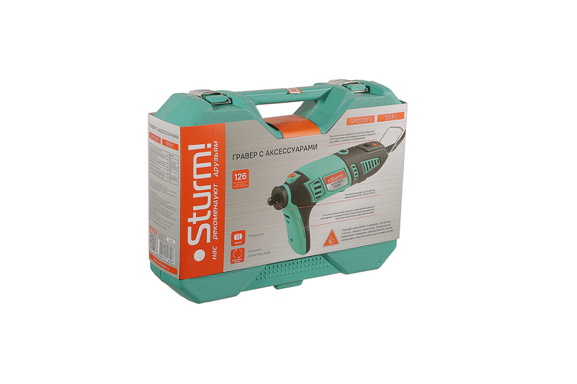 Электрический гравер Sturm GM2318FS — маневренное универсальное устройство для широкого спектра работ: резка, сверление, полирование, гравирование, шлифование, фрезерование различных материалов: металл, дерево, камень, стекло, пластмасса и т.д. Высокоточная цифровая настройка оборотов с ЖК-дисплеем позволит подобрать требуемую скорость под отдельную задачу. Также данная модель предоставляет возможность установки цанг трех различных диаметров 1,6/2,4/3,2 мм, что допускает применение большого множества отличных насадок. Для быстрой и удобной смены оснастки есть кнопка блокировки шпинделя.