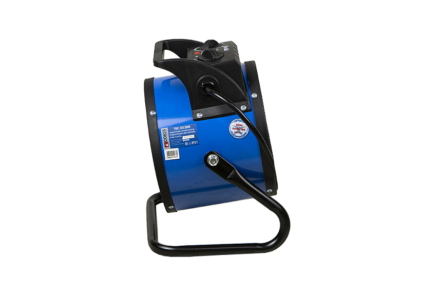 СОЮЗ ТВС-3023МК — мощный мобильный керамический обогреватель для временного или постоянного обогрева жилых, производственных и вспомогательных помещений площадью до 40 м2. Главная особенность модели — наличие в конструкции металлокерамического нагревательного элемента, благодаря большой площади теплоотдающей поверхности которого гарантируется быстрый нагрев. Для того, чтобы обеспечить высокую производительность воздушного потока, проходящего через нагревательный элемент и ускорить циркуляцию нагретого воздуха в помещении, обогреватель оснащен встроенным мощным вентилятором. Управление устройством осуществляется парой регуляторов, расположенных на верхней панели. С помощью первого регулятора пользователь выбирает один из трех режимов работы: вентиляция без нагрева / теплый обдув / горячий обдув. Второй регулятор — управление настройкой термостата, задача которого — поддержание постоянной температуры в помещении. Визуальному контролю включенного устройства способствует отдельный индикатор питания, размещенный на панели управления. Дополнительное удобство при использовании обеспечивает возможность регулировки направления воздушного потока посредством наклона корпуса обогревателя вверх-вниз, а также широкая опорная подошва по периметру, предотвращающая случайное опрокидывание устройства.