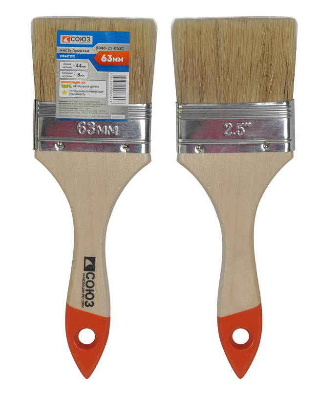 Кисть плоская "Практик" 2,5" (63 мм), натуральная щетина СОЮЗ