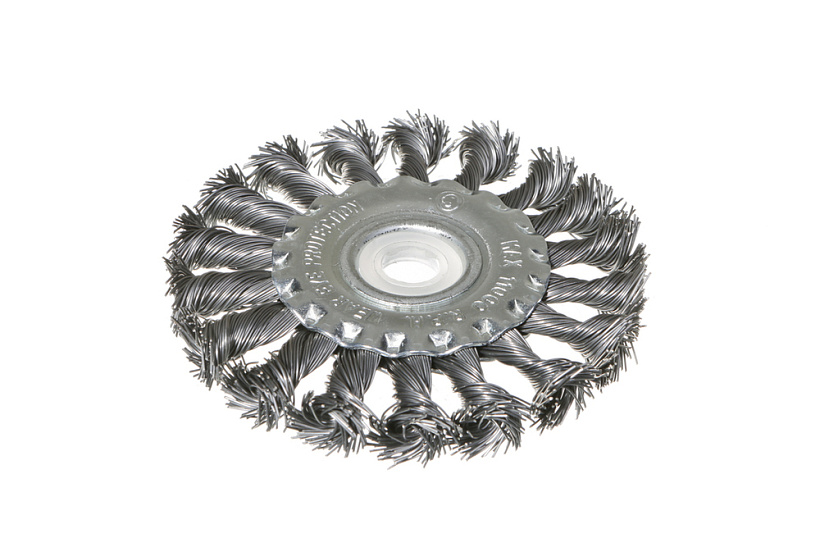 Корщетка-насадка является сменным элементом для УШМ. Щетка применяется для шлифовки, полирования, зачистки от лака, краски и коррозии различных поверхностей и изделий. Рабочая часть состоит из скрученной в пучки стальной проволоки. Специальная форма щетки в виде диска и упругие плетеные пучки позволяют работать в труднодоступных местах.